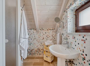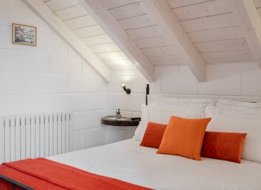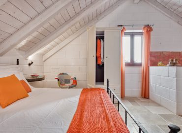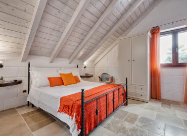 La Mansarda Manzoni , posta al primo piano con accesso indipendente è una camera matrimoniale luminosa dal tetto mansardato rivestito in legno chiaro, comoda per due persone ed elegantemente arredata con pavimento in chianche martinesi. Antistante all’ingresso è attrezzata un area relax tra i trulli con vista sulla zona piscina.