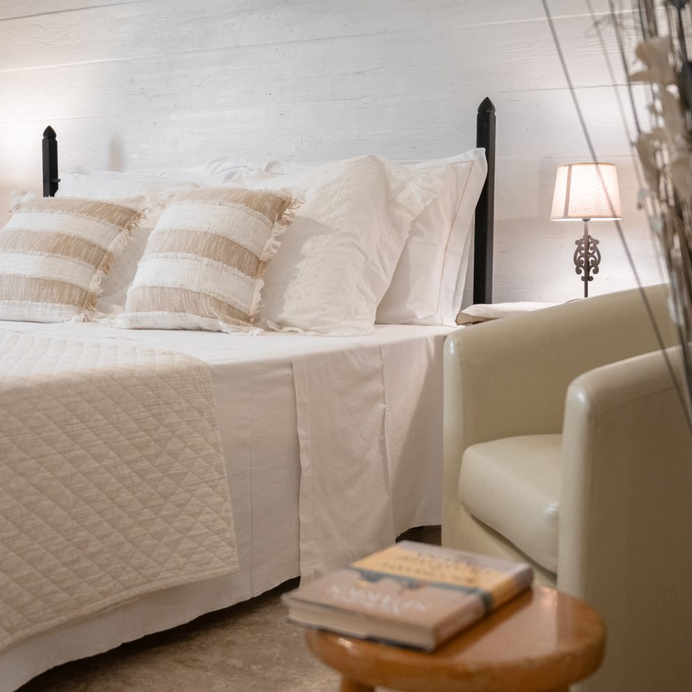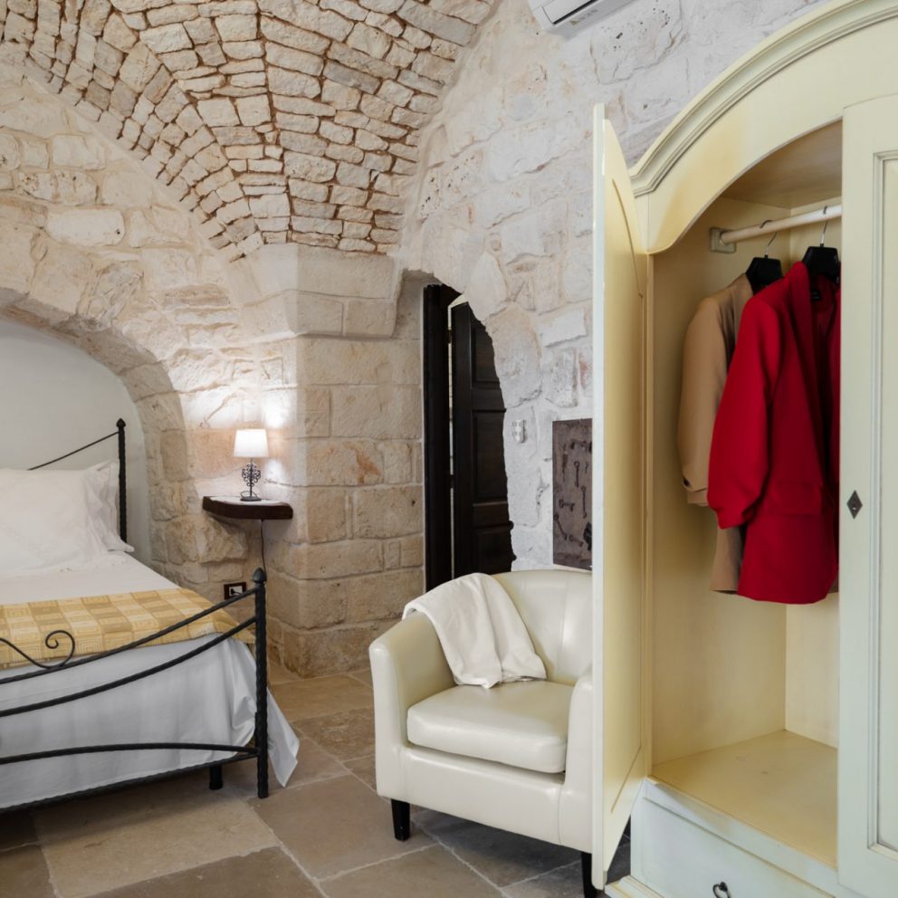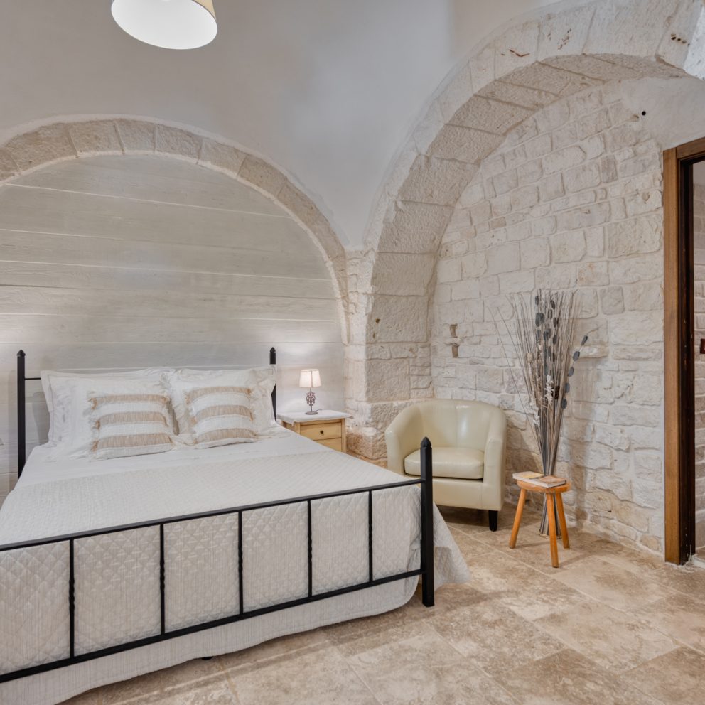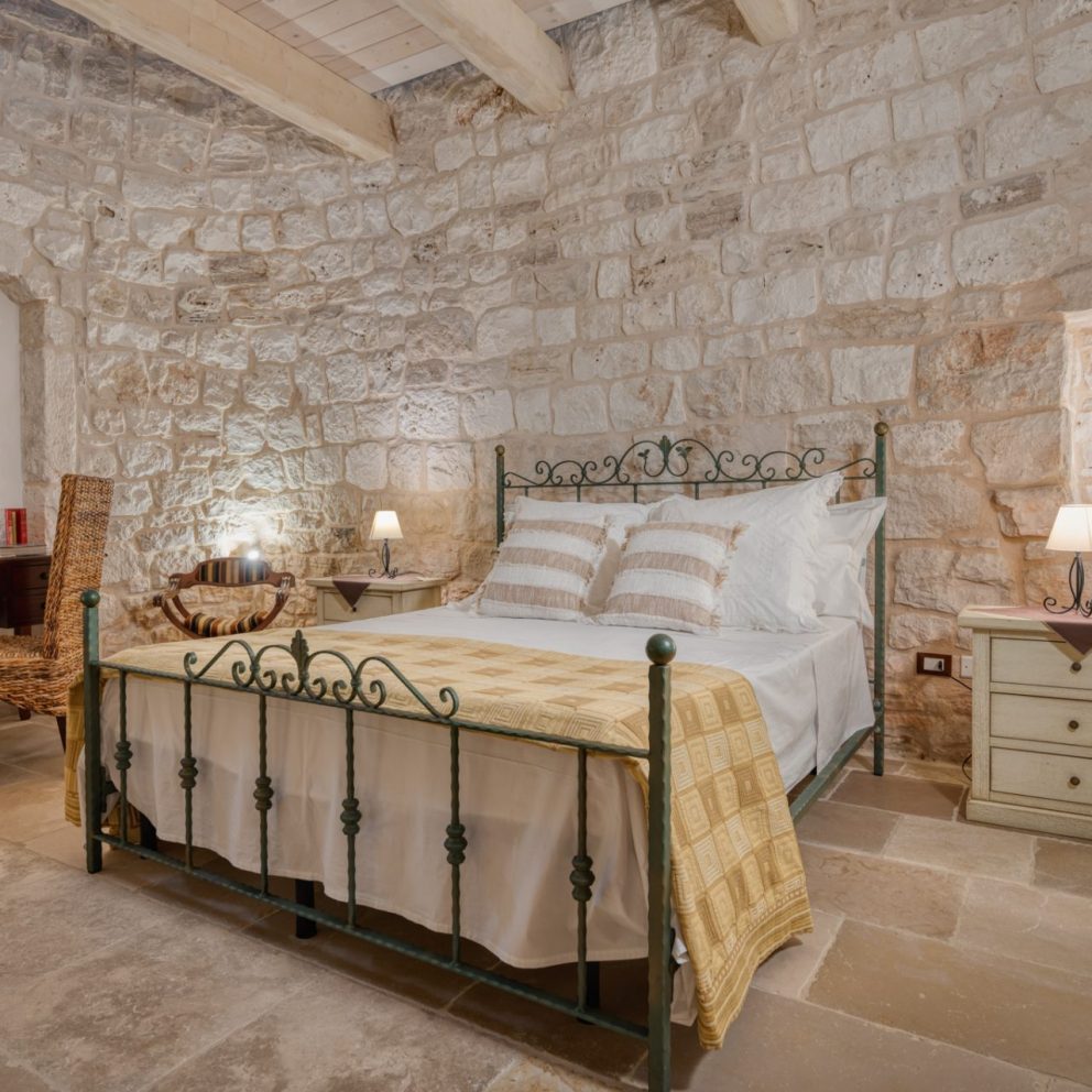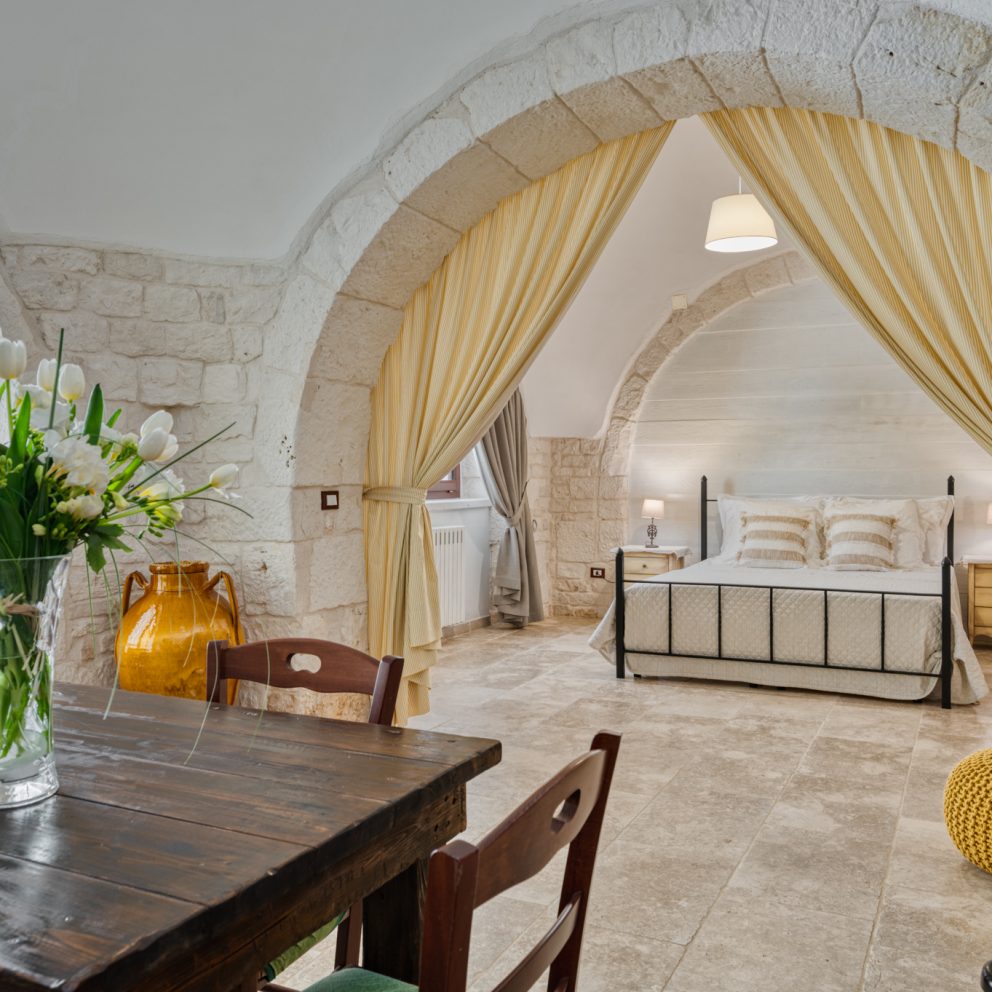 La suite trullo Verga era in origine la stalla della masseria, completamente ristrutturata e portata a pietra viva per non perdere le caratteristiche ereditate, diventando una calda e accogliente camera per tre persone. Grande circa 40 mq, dotata di tutti i comfort e arredata con la cura del dettaglio, è composta da un letto matrimoniale […]
