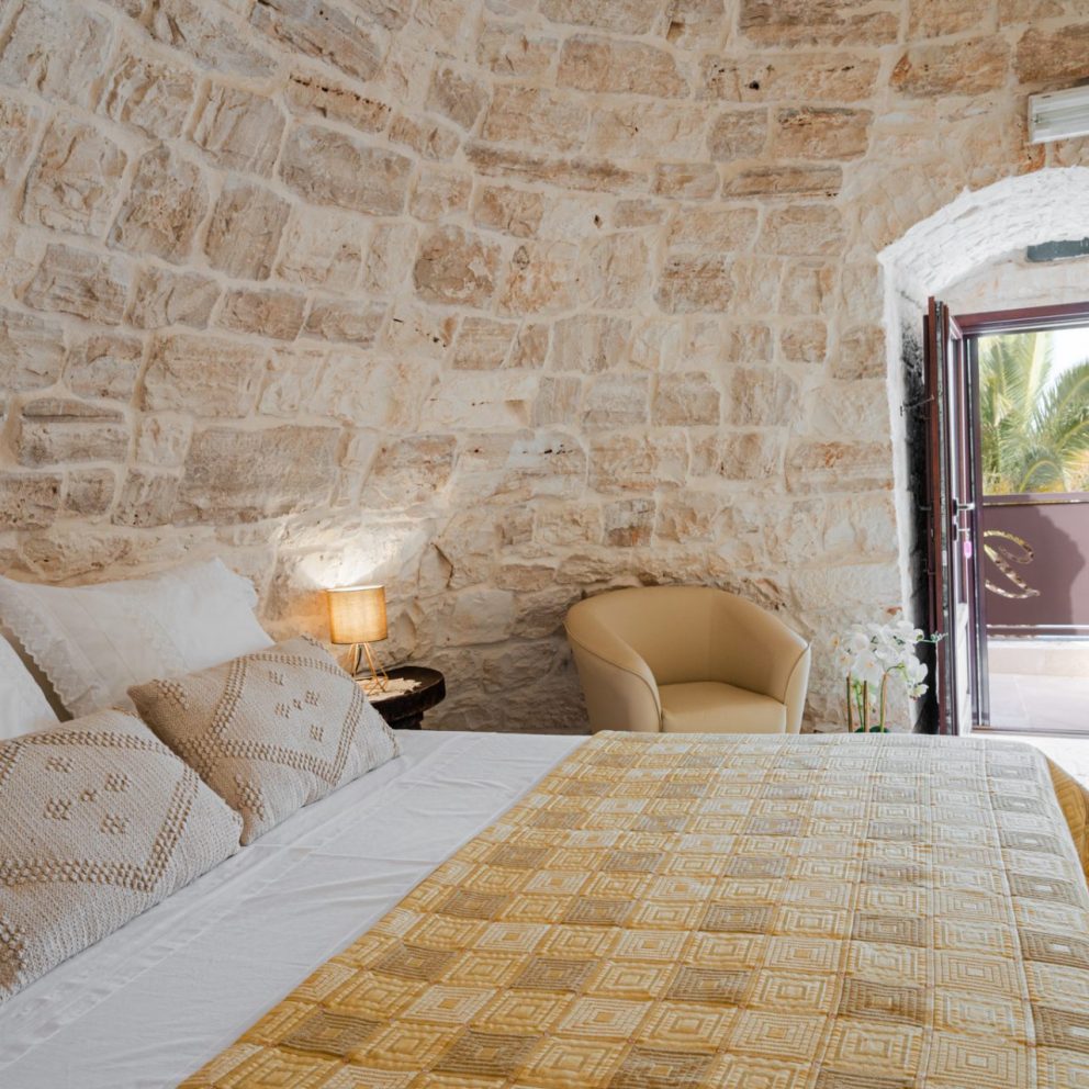 La suite trullo Verga era in origine la stalla della masseria, completamente ristrutturata e portata a pietra viva per non perdere le caratteristiche ereditate, diventando una calda e accogliente camera per tre persone. Grande circa 40 mq, dotata di tutti i comfort e arredata con la cura del dettaglio, è composta da un letto matrimoniale […]